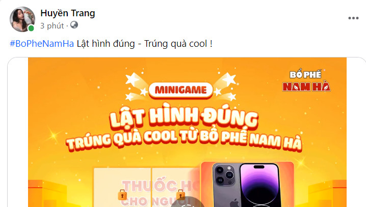 Bài post công bố trao thưởng sẽ được up lên trang fanpage của Bổ Phế Nam Hà vào ngày 05/01/2024